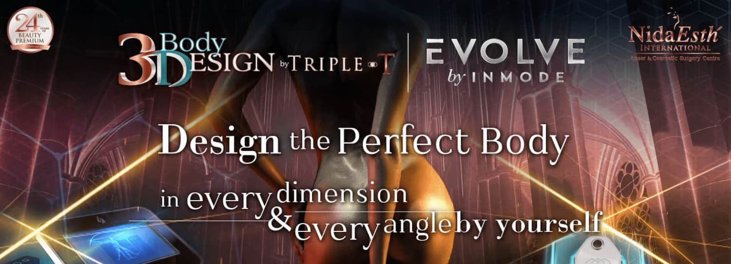 3D Body Design by Triple T เทคโนโลยีลิขสิทธิ์ล่าสุดที่ถูกออกแบบมาเป็นพิเศษเพื่อตอบโจทย์ปัญหาเรือนร่างได้ทุกมิติในครั้งเดียวของการรักษา จึงเป็นเทคโนโลยีแรกที่เป็น All-in-one Solution สำหรับปัญหาเรือนร่าง ทำให้ไม่ต้องเสียเวลา เพราะสามรถแก้ไขปัญหาเรือนร่างได้ครบ จบ ภายในครั้งเดียว โดยการใช้ Bipolar Technology แบบสามมิติอันเป็นเอกสิทธิ์เฉพาะในการส่งค่าพลังงาน RF (Radiofrequency) และคลื่น EMS (Electro Magnetic Spectrum) แบบพิเศษเพื่อเข้าไปแก้ไขปัญหาเรือนร่างของคุณ